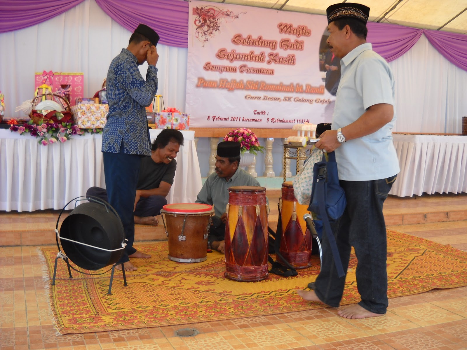 Pada 08 Februari 2011 yang lalu telah berlangsungnya Majlis Sekalung Budi Sejambak Kasih Sempena Persaraan Guru Besar Sekolah Kebangsaan Gelong Gajah Pn Hajjah Siti Romainah Binti Ramli. Ramai tetamu jemputan yang hadir, antaranya rakan - rakan Guru Besar dan Pengetua - Pengetua dari sekolah daerah Manjung, bekas anak murid, Pegawai - pegawai PPD Manjung dan lain - lain lagi.